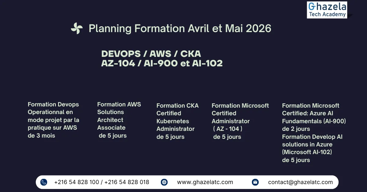 Formation en DevOps : CICD, Jenkins, Docker, Kubernetes, Docker Swarm, GIT, GitLab, Maven, Yarn, Gulp, SonarQube, Ansible, Terraform, Vagrant, puppet, logstash, Prometheus, Message brokers and Message queues, Linux ...